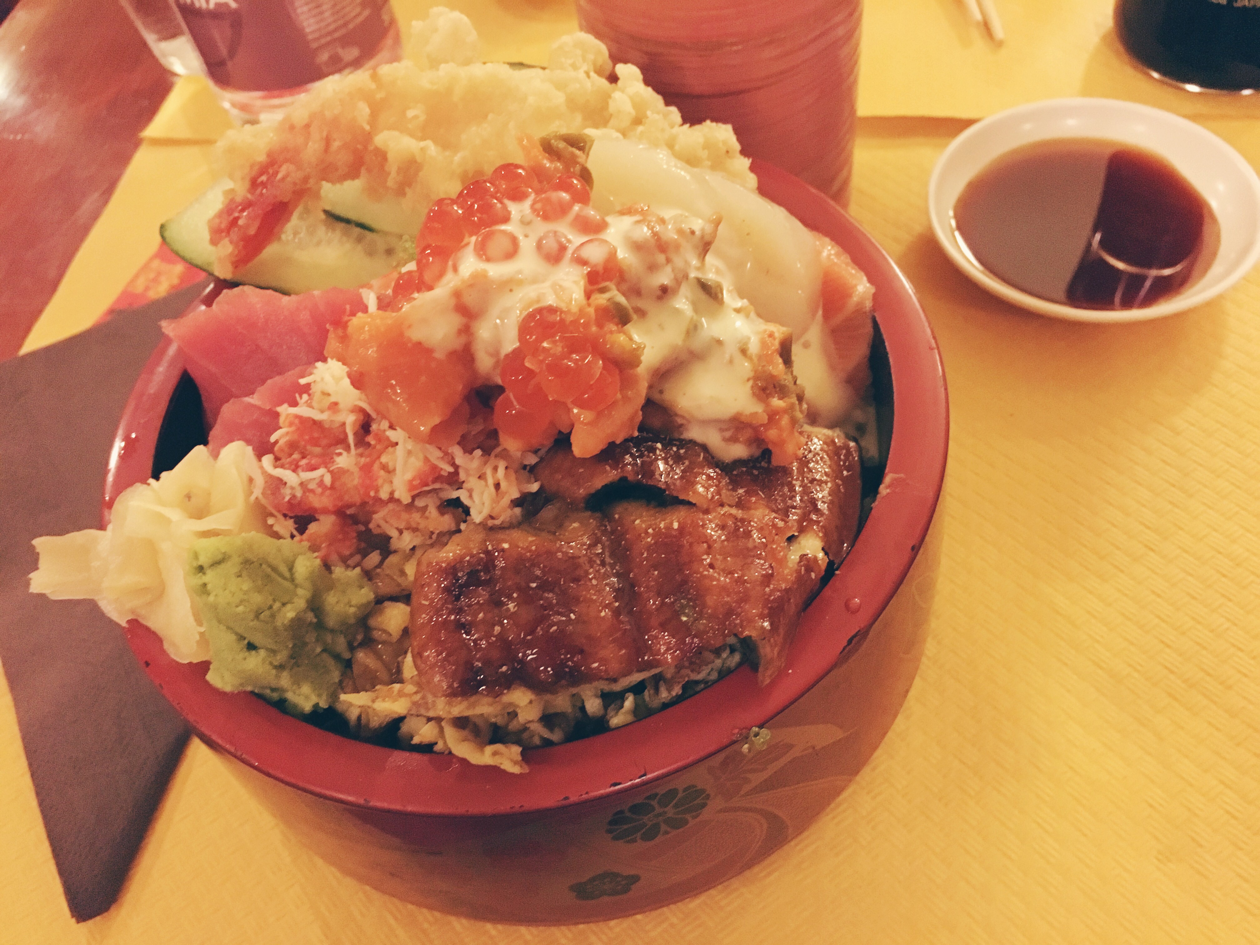 Ma andiamo al sodo. Ordiniamo: Chirashi speciale, una cosa mai vista prima. Considerato piatto unico per la quantità di pesce e riso che c’è nella ciotola. Diciamo che non è il classico piatto che si è soliti vedere in un ristorante giapponese. Pesce freschissimo che si scioglie in bocca, tipologia molto varia, quantità davvero importante. Pazzesco.