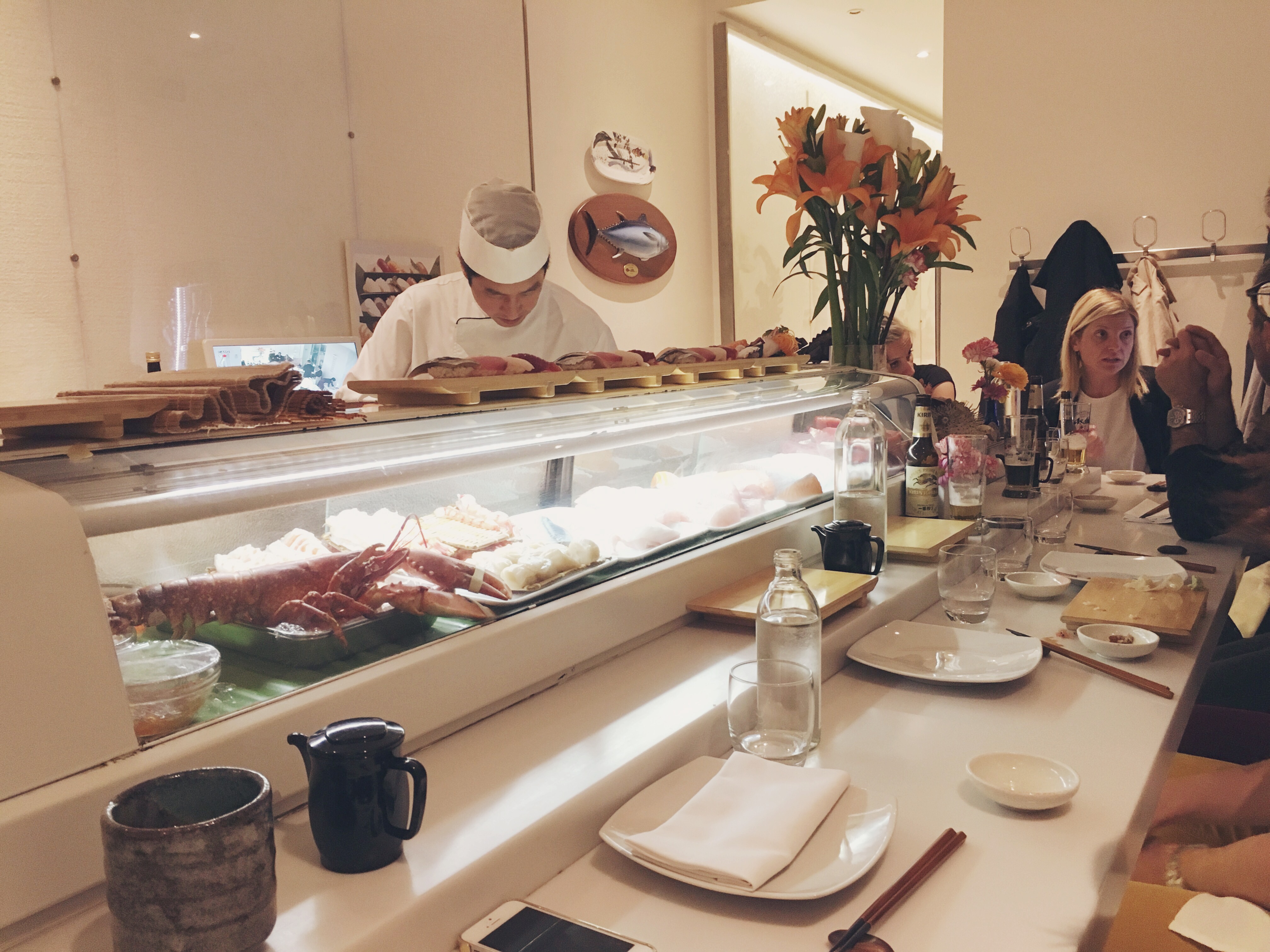 La prima sala è dedicata alle sedute normali mentre la seconda al sushi bar. Il personale ci fa accomodare subito al bancone e scegliamo di stare proprio davanti a Chef Yoshinobu Kurio (Yoshi) e al suo Su-Chef.