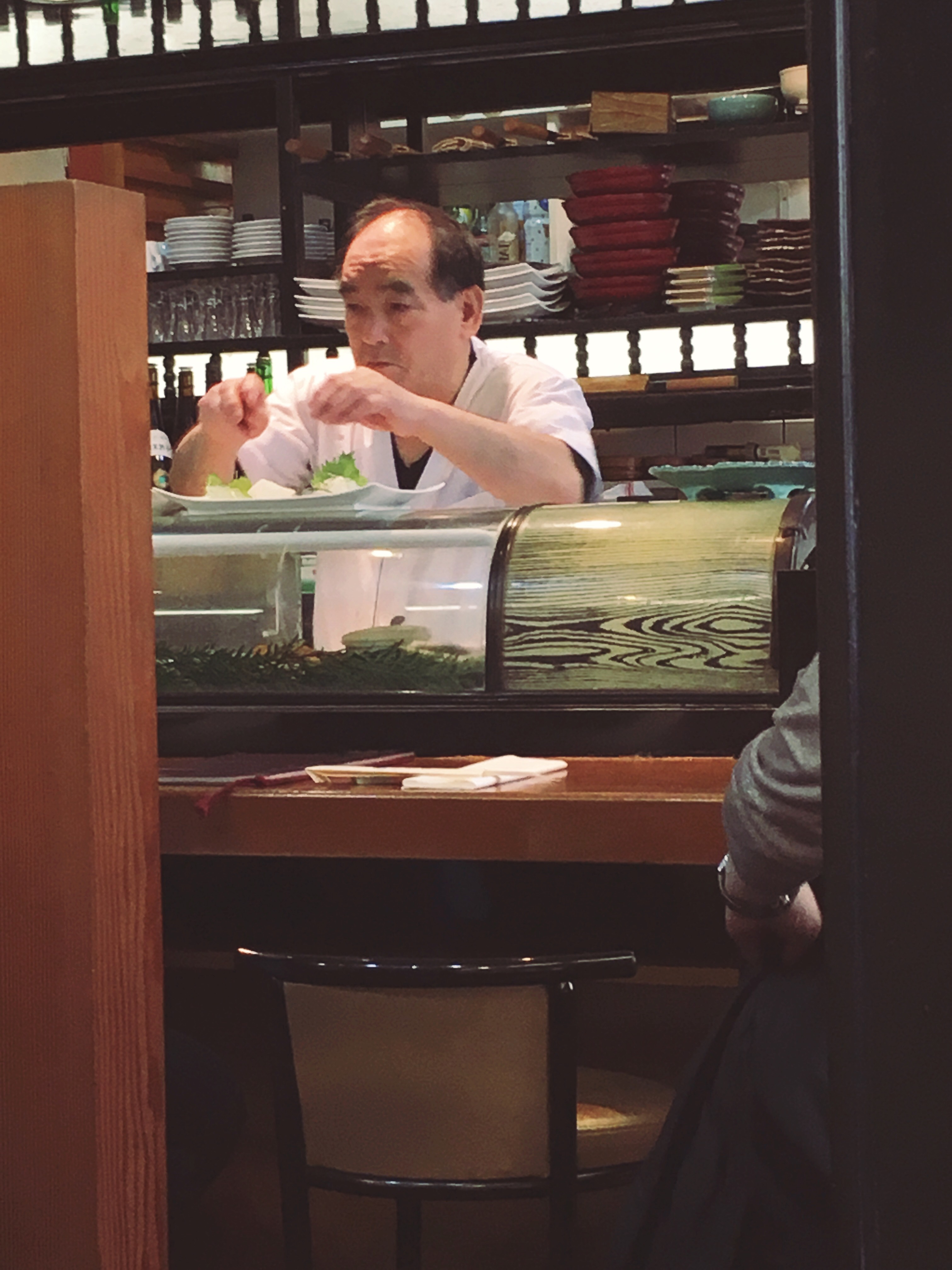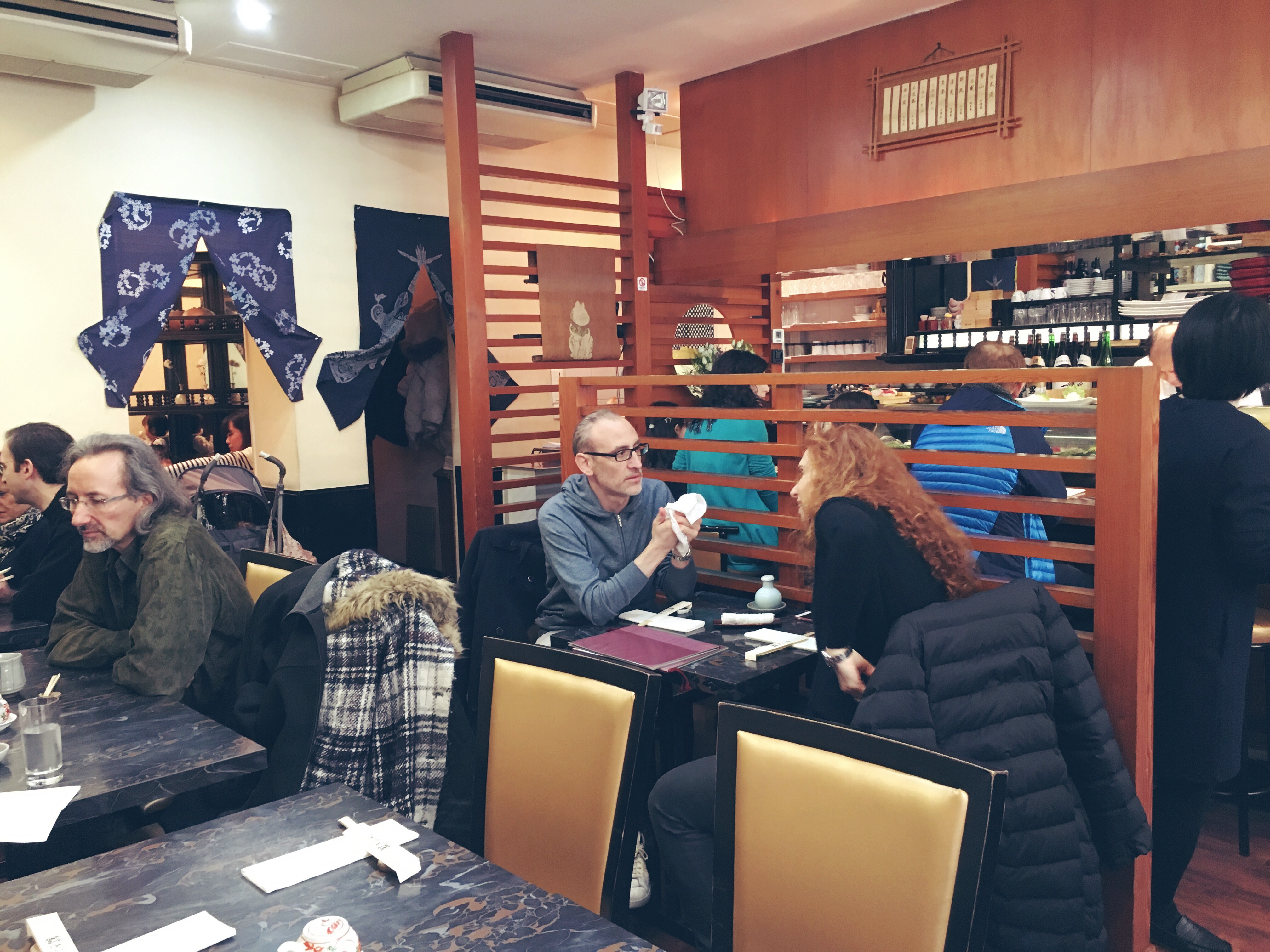 C’è il sushi bar ma avendo prenotato per telefono, con un misto di francese e inglese, non abbiamo avanzato nessuna richiesta particolare, quindi pranziamo in un tavolo normale (ricordate sempre di prenotare almeno un giorno prima perché è molto difficile trovar posto).