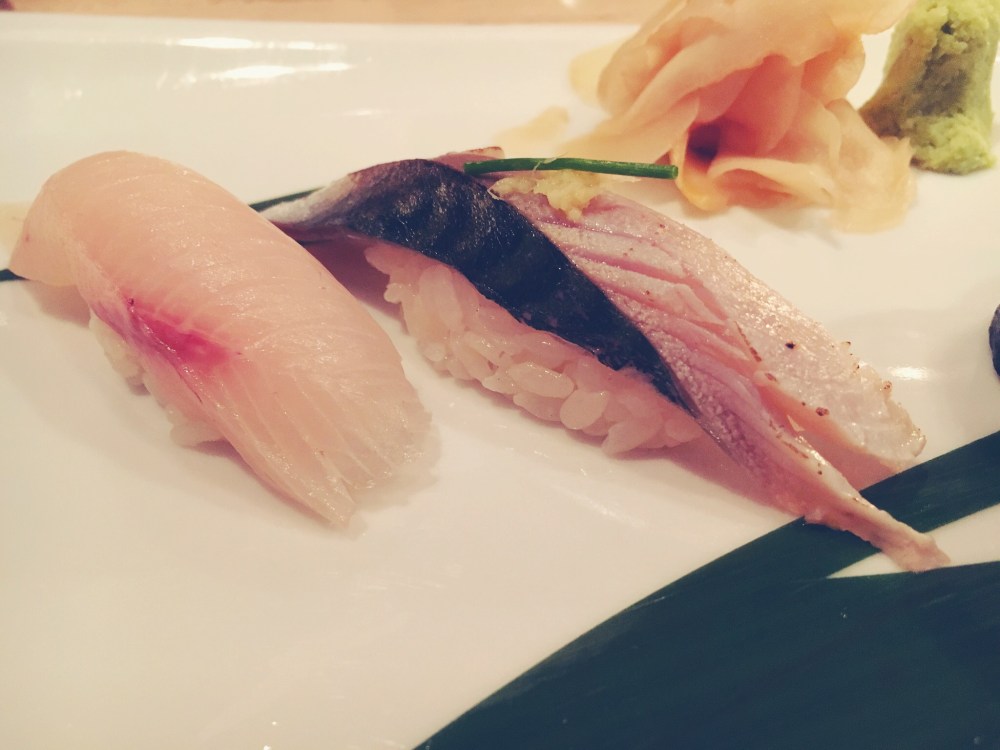 Nello stesso momento arrivano i nigiri: Salmone, Polipo, Ricciola e Sgombro. Tutti buoni ma probabilmente quello più apprezzato è proprio lo Sgombro.