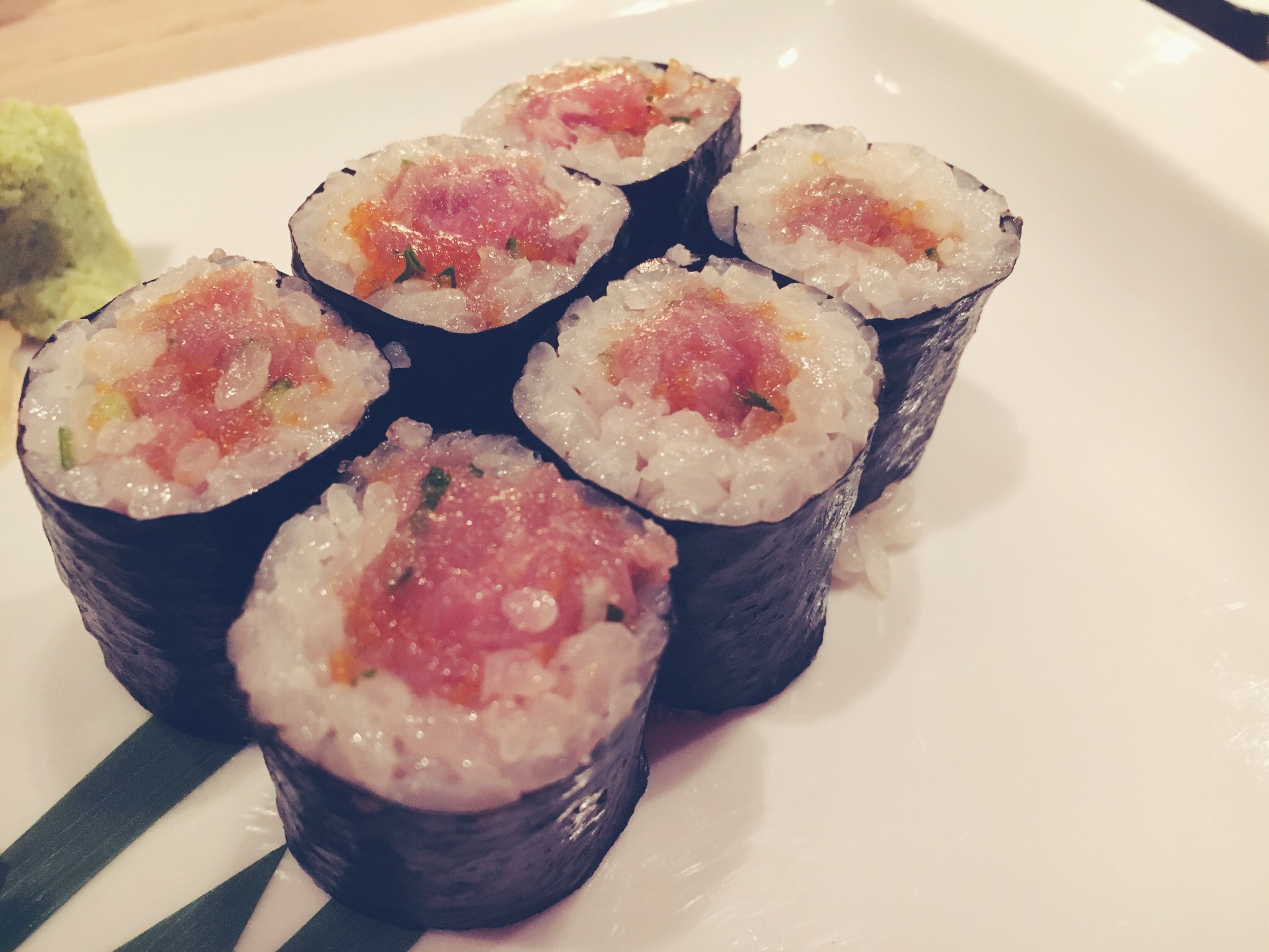Iniziamo molto bene con gli Hosomaki con la Ventresca di Tonno e Cipollotti. Molto buoni. Se vi capita di trovare la ventresca provatela, ha un gusto completamente diverso dal filetto di tonno classico.