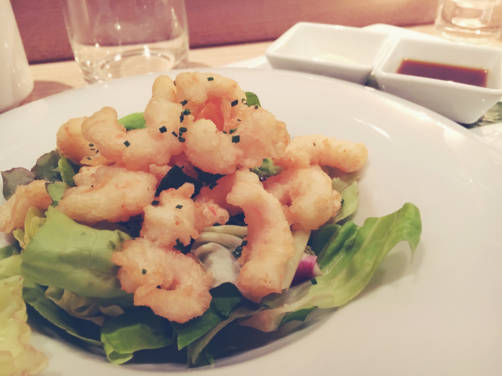 Gamberi dolci avvolti da una Tempura molto leggera da immergere nella Salsa Jalapeno appena piccante e nella Salsa Ponzu, dal gusto aspro. Anche qui stesso discorso fatto precedentemente per il Tonno: ogni pezzo immerso in una delle due salse assume un sapore completamente diverso. Entrambi originali.