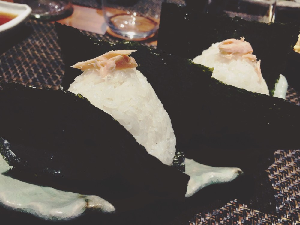 Poi passiamo agli Omosubi, una pietanza molto simile al classico Onighiri, ossia una Polpetta di Riso ripiena di Salmone alla griglia, avvolta in Alga Nori, utile per poterla gustare servendosi delle sole mani.