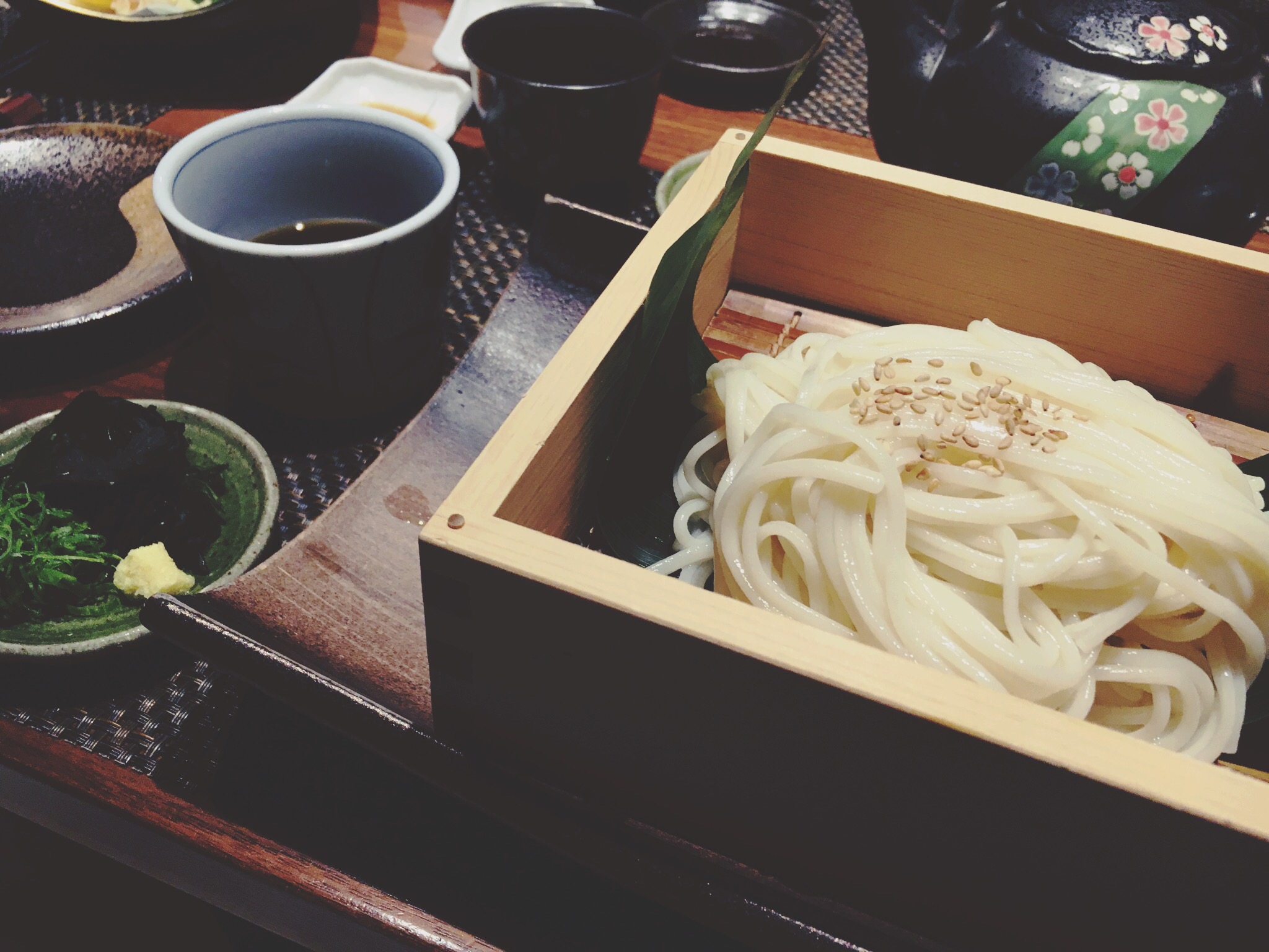 Il cameriere ci indica come mangiarli: ci viene dato un bicchiere con la Salsa Tsuyu e all’interno di essa ci dobbiamo mescolare delle spezie. Dopodiché ogni boccone di udon deve essere imbevuto dentro il bicchiere della salsa e poi gustato. Un piatto molto particolare perché servito freddo.
