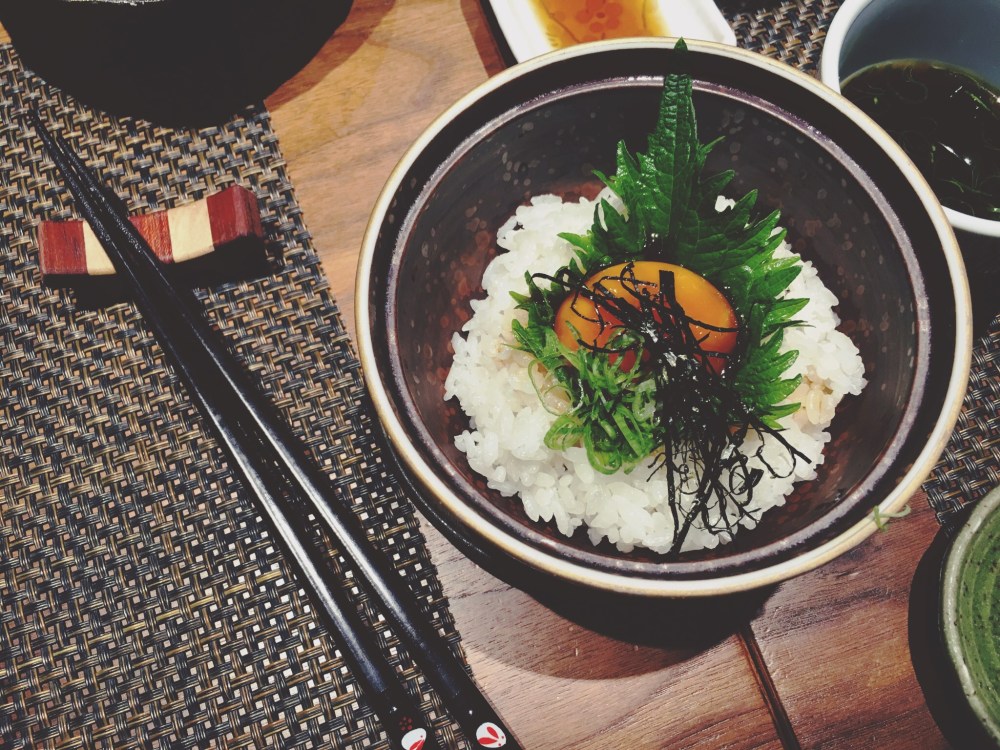 Poi arriva il Tamako Kake Gohan, Ciotola di Riso al vapore con Tuorlo marinato in Salsa di Soia.