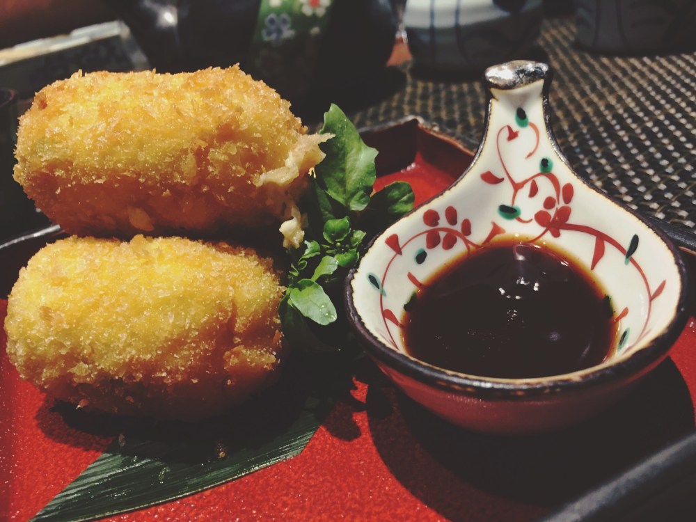 L’ultima portata salata fa parte ancora una volta dei fritti e sono le Crocchette di Seafood con Latte di Soia. Esterno croccante, interno morbido. Ogni boccone è da abbinare con la salsa Tonkatsu.