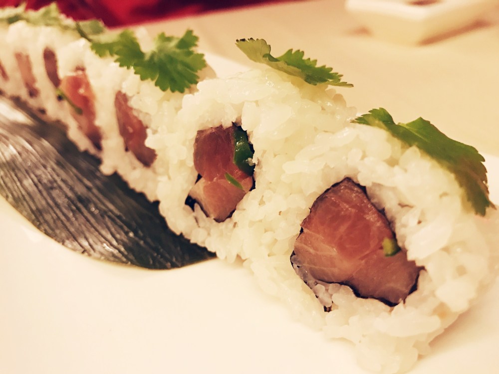 Il roll è molto semplice e dalla descrizione probabilmente non sembrerà nulla di che. I sapori sono molto particolari. Il gusto dominante è quello della Ricciola, il Jalapeno dà la componente leggermente piccante non eccessiva e infine il Coriandolo cconferisce freschezza e fragranza al roll.