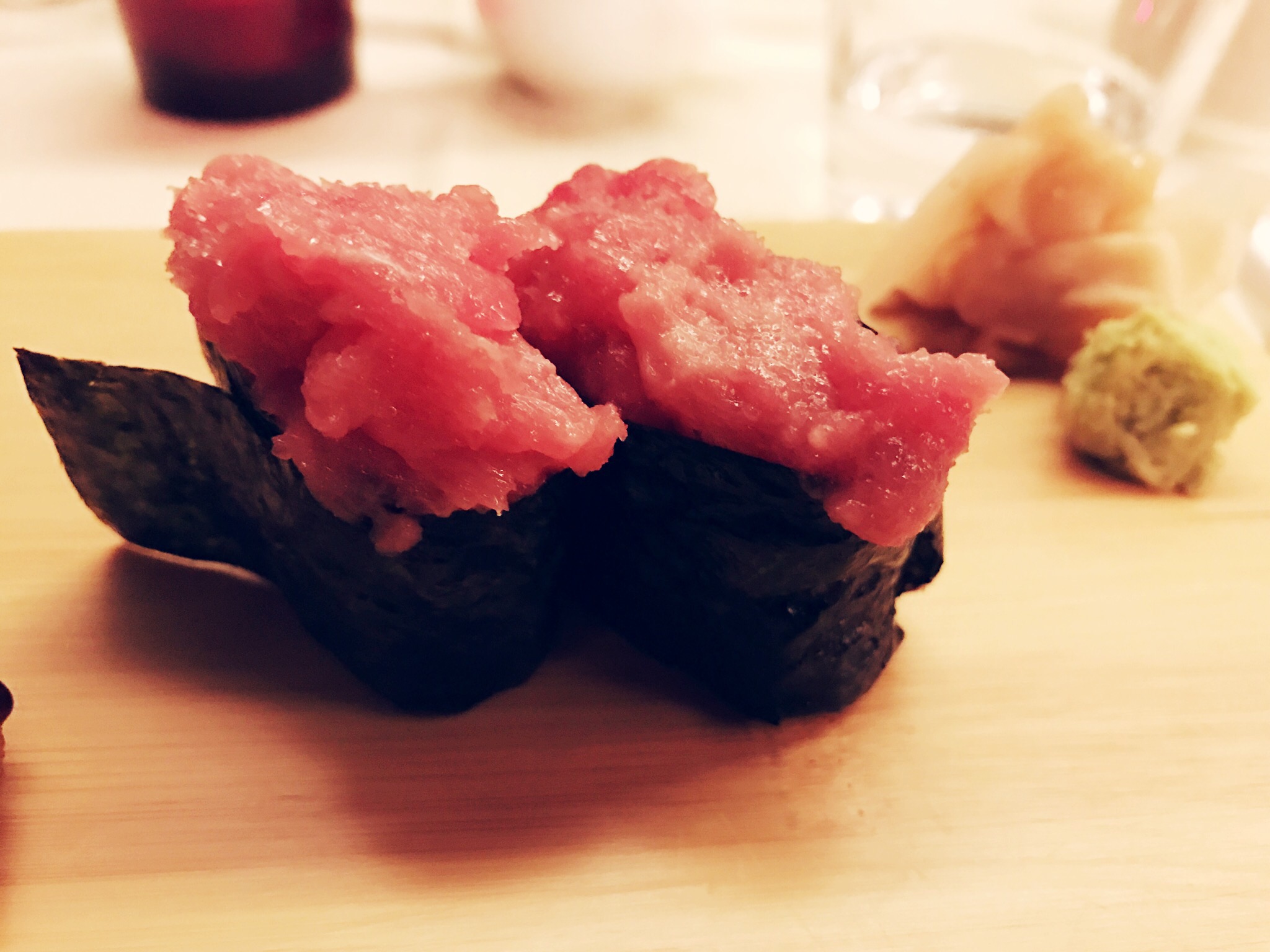 Non tardano ad arrivare le seconde portate. I Gunkan con tartare di Ventresca di Tonno, morbidi e con un gusto che solo questo taglio di pesce può dare;
