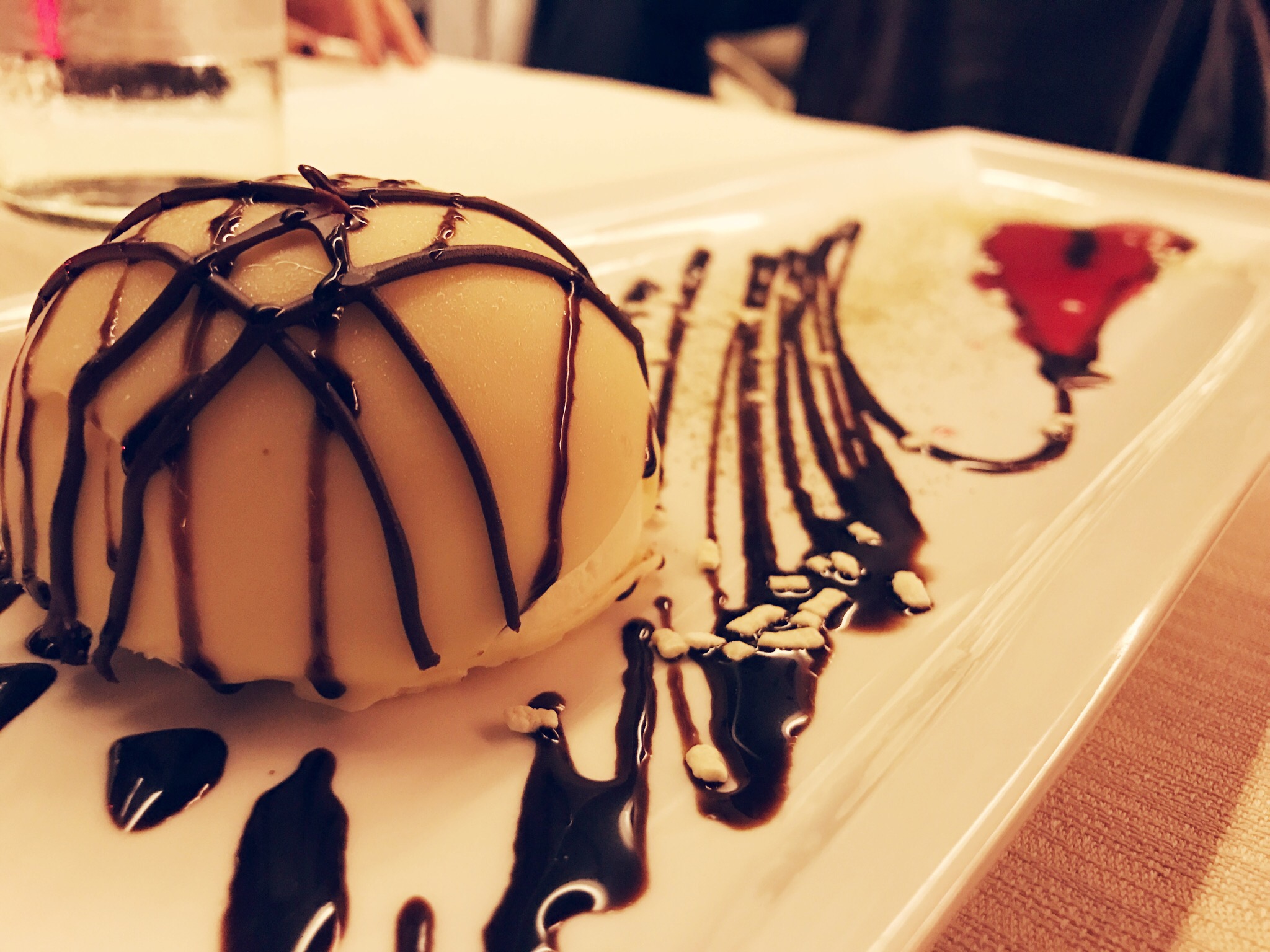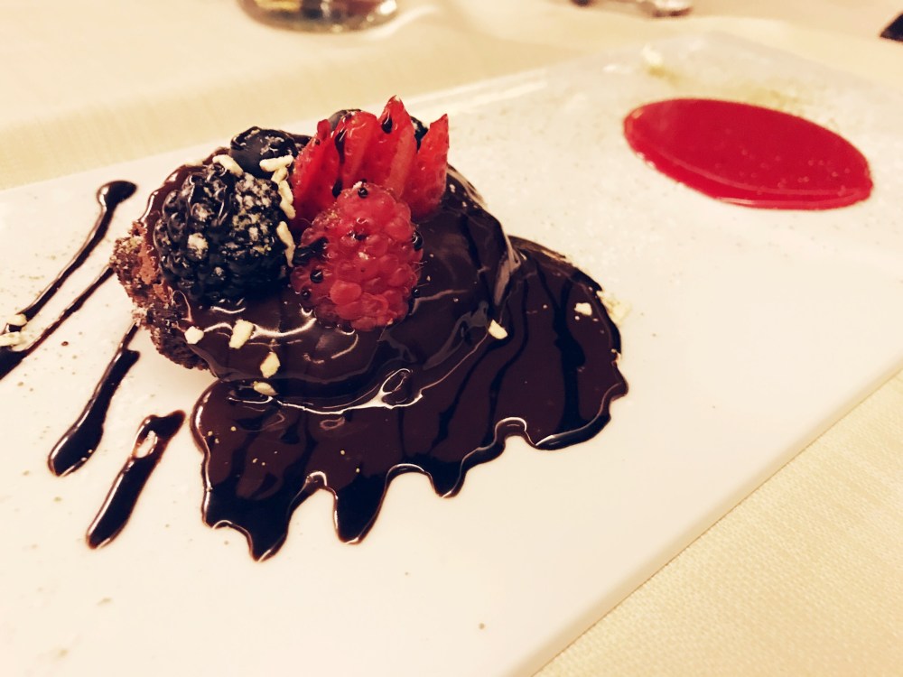 Basara è si sushi ma anche pasticceria, quindi ci sentiamo in obbligo di assaggiare anche il dolce. Arriva la cameriera con il vassoio per illustrarceli e tra tutti optiamo per il Brutto ma Buono, servito con Cioccolato fuso e una Sacher Bianca, torta di cioccolato con lamponi freschi e cotti, mousse di cioccolato bianco e copertura di cioccolato bianco solidificata.