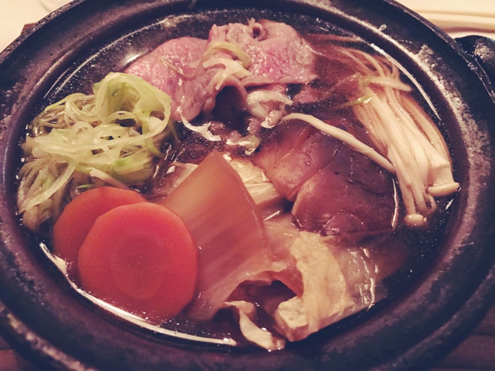 Come ci spiega prontamente il personale di sala, la cottura è simile a quella dello Shabu Shabu, che in parte viene cotto sul tavolo e servito in un’unica pentola, mentre, nel nostro caso, ognuno di noi ha un mini pentolino tutto per sè.