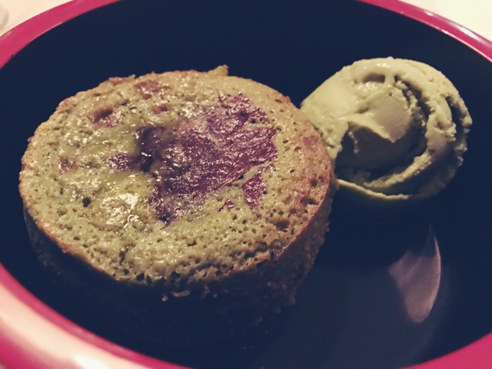 Vogliamo terminare la nostra cena con qualcosa di dolce, quindi ordiniamo Soufflé al The Verde fuori menù con interno di Cioccolato fondente e Gelato al the Verde .