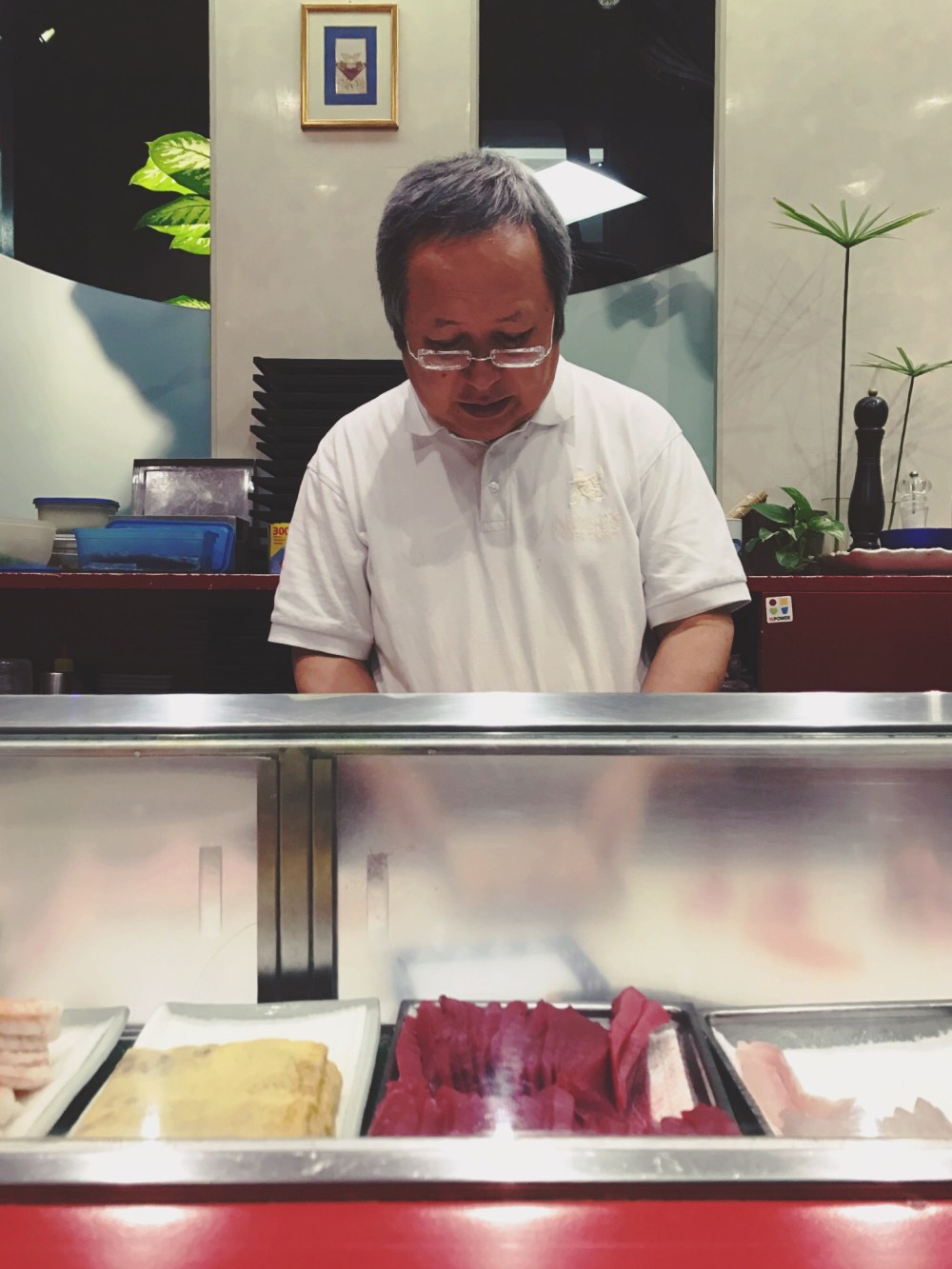 Mentre aspettiamo di ordinare veniamo accolti da Shozo San, l’anziano prioritario e sushiman del ristorante, con il quale iniziamo a scambiare qualche parola.