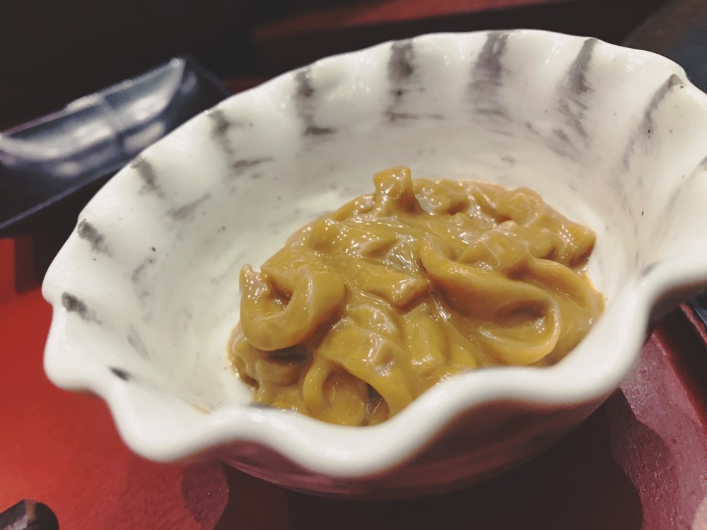 Non siamo ancora sazi. Chiediamo quindi al Maestro se ha qualche pesce particolare che possiamo assaggiare, sempre sotto forma di Nigiri. Senza esitare, Shozo San ci consiglia l’Ika (Seppia), quasi croccante, adagiata su una foglia di Shiso che dà freschezza e l’Hokki Gai (Spisula), un Mollusco dal colore tendente al rosso, che come consistenza e morbidezza ricorda vagamente la polpa delle chele di un’Astice.