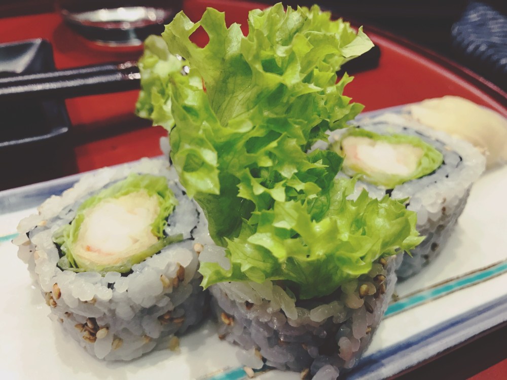 Poi è il momento degli Uramaki con Tempura di Gambero e insalata.