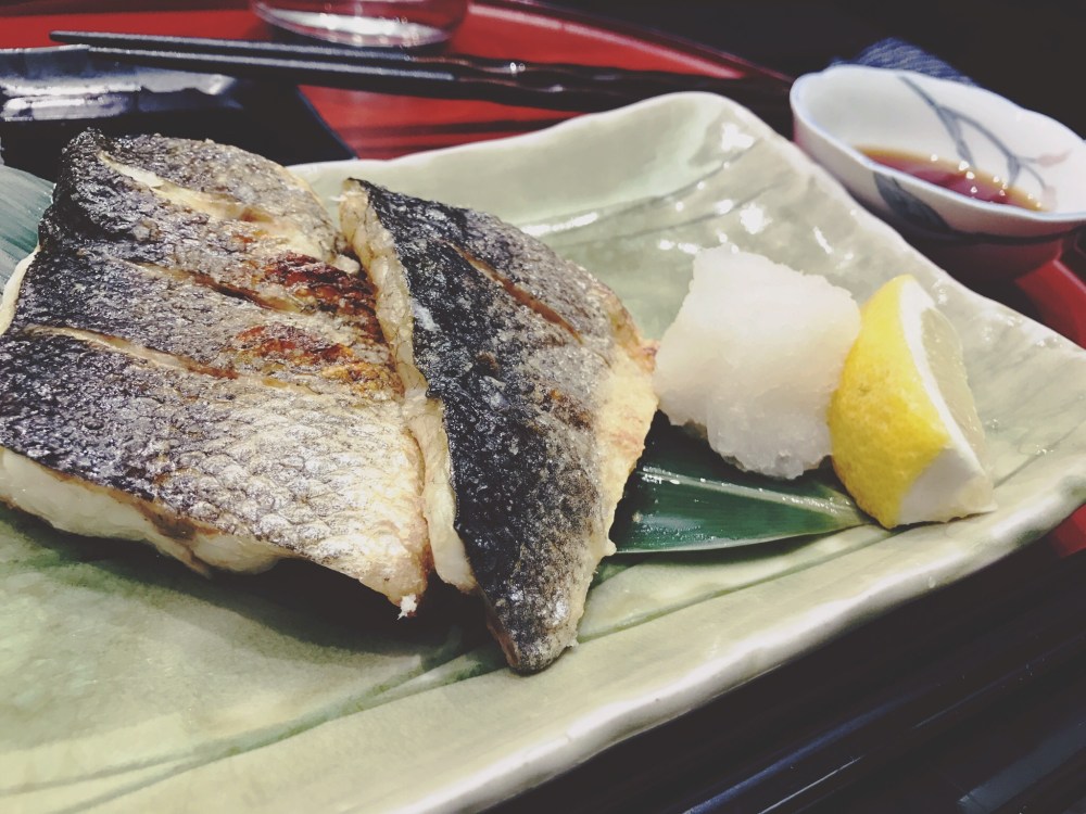 Terminiamo il nostro percorso culinario con due filetti di pesce cotto: un’ottimo Branzino al forno marinato nel Miso e il Suari (pesce azzurro), già assaggiato nella selezione di Nigiri, questa volta in versione fritta.