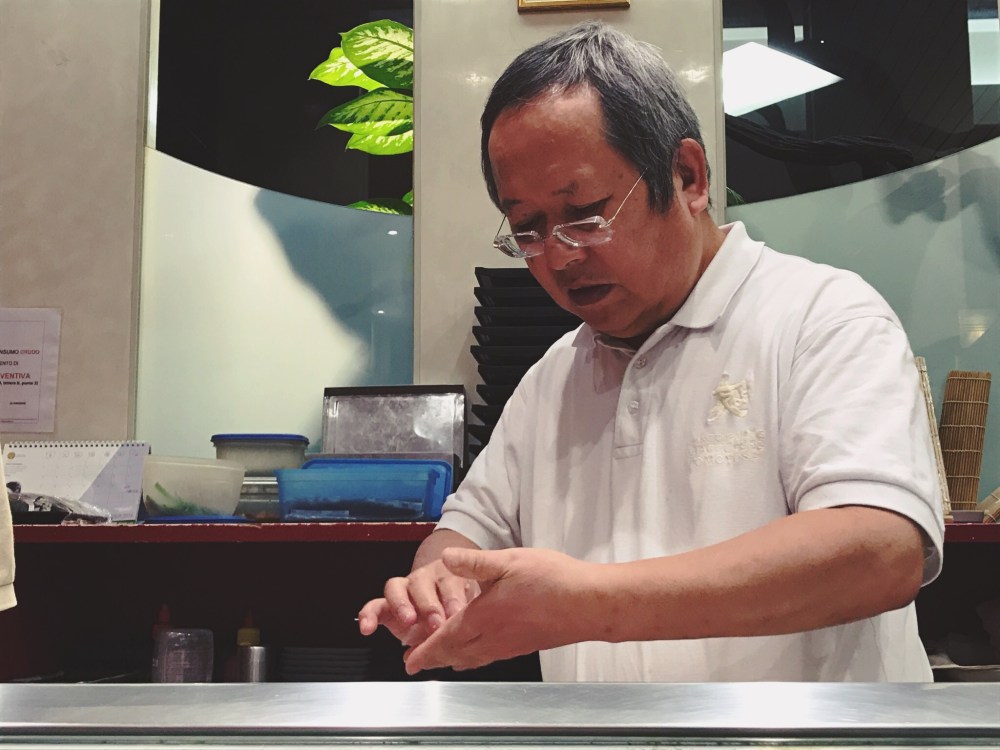 Con molta dolcezza ci racconta che è nato a Sendai, in Giappone, una città non molto distante da dove c’è stato lo tsunami nel 2011. Ha iniziato a lavorare come sushiman a Tokyo ed il suo arrivo in Italia è datato 1980.