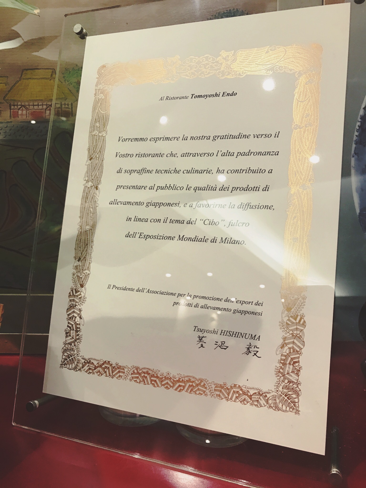 L’esperienza da Tomoyoshi Endo è stata sicuramente una delle più autentiche a cui abbiamo avuto il piacere di partecipare. Ma vi diremo di più. Non è da tutti i giorni cenare soli al bancone. Aver avuto a disposizione Shozo San per tutta la sera e chiacchierare con lui è stato unico.
