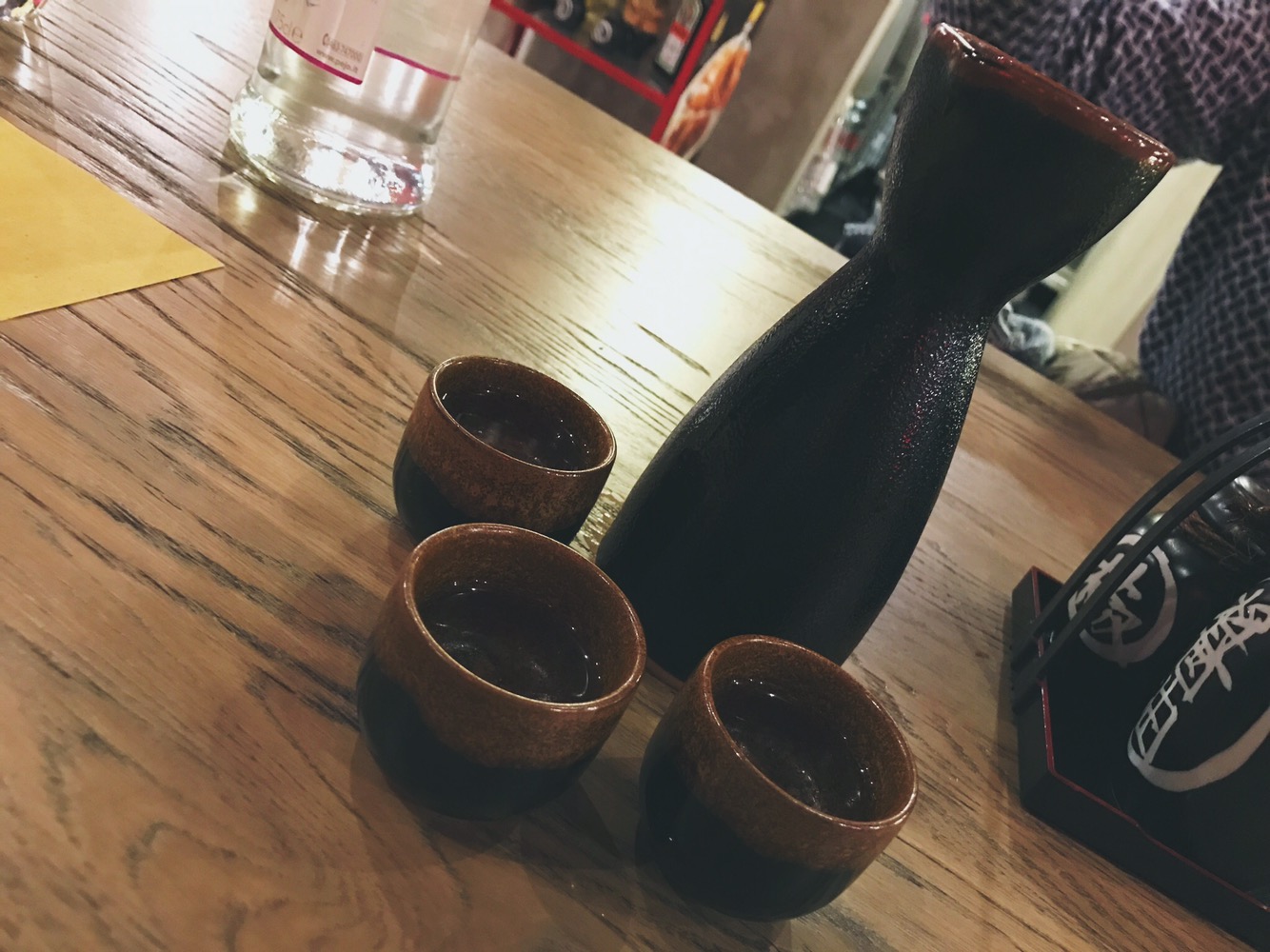 Nel frattempo ordiniamo anche il Gekkeikan, un buon sake tradizionale Junmai servito caldo per accompagnare la cena.