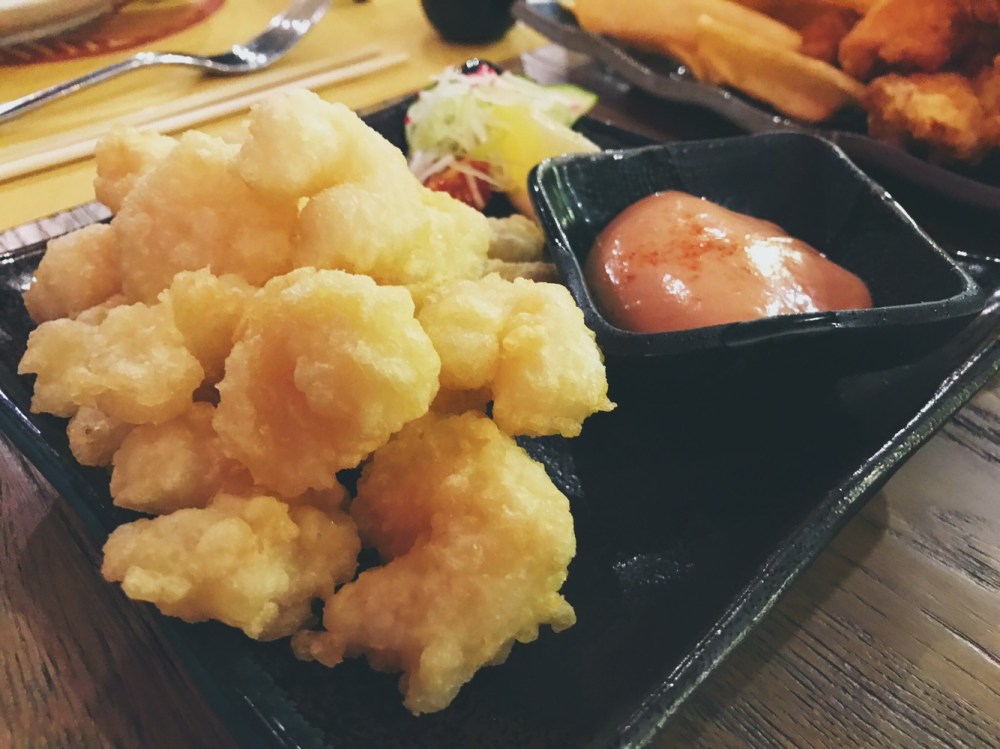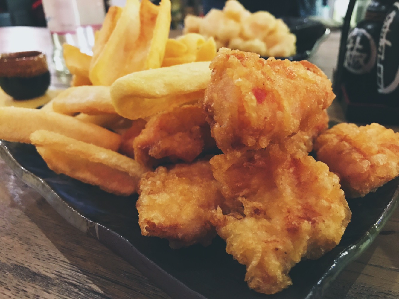 Continuiamo con il Karaage e Chips, Bocconcini di Pollo fritti fatti in casa e patatine, l’antipasto migliore che abbiamo assaggiato.