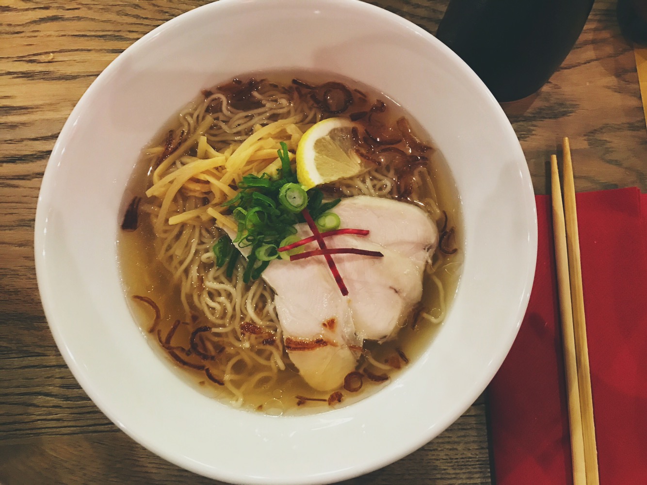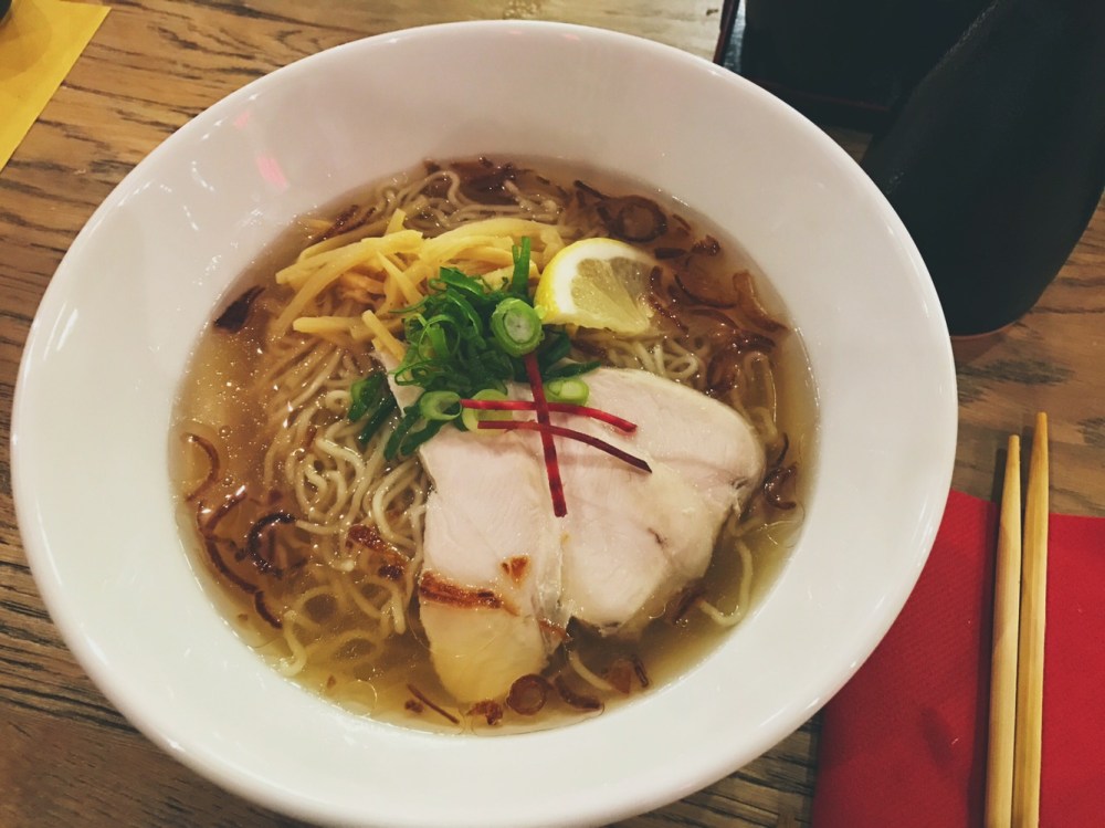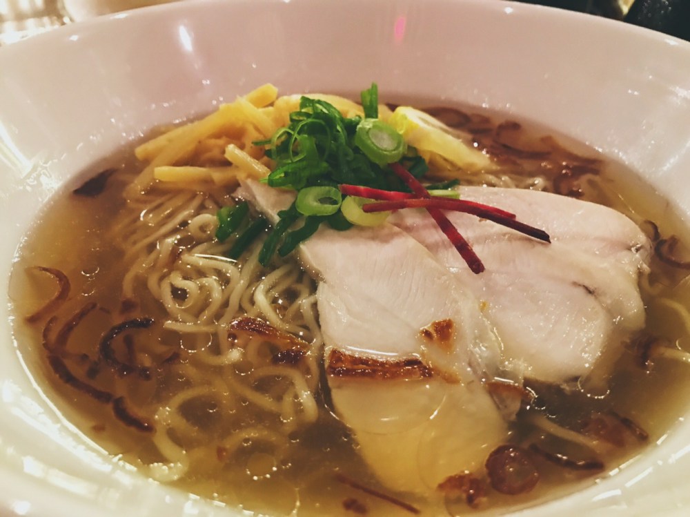 Questo ramen è caratterizzato da un brodo chiaro, leggermente saporito, delicato e con sentori dell’alga Kombu.