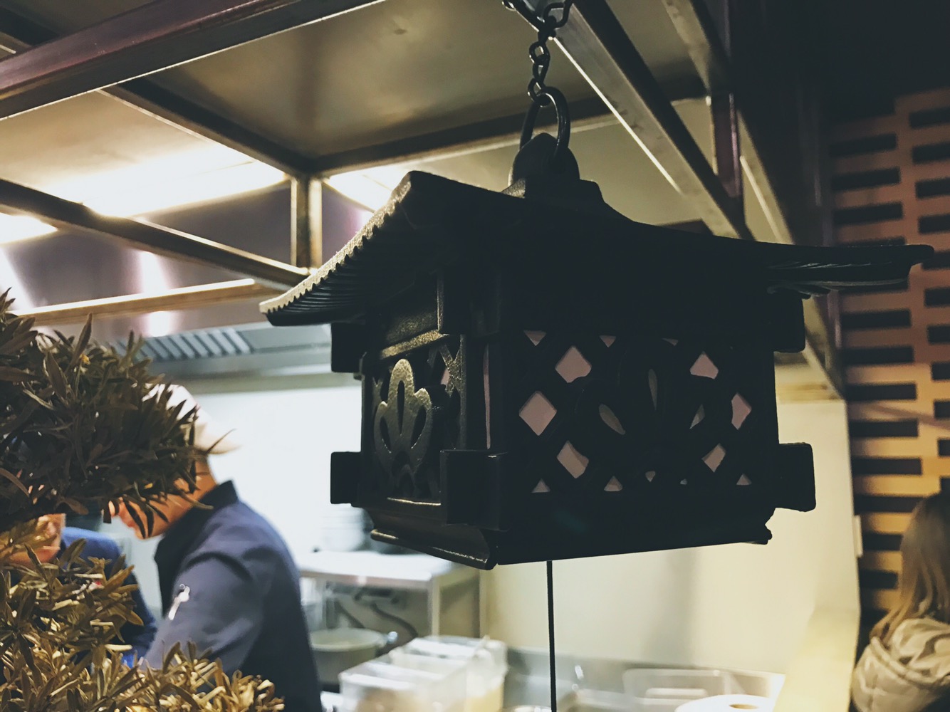 Il locale è arredato in stile urbano giapponese, con cucina a vista, due lunghi banconi, tra i quali sono collocate diverse tavolate.