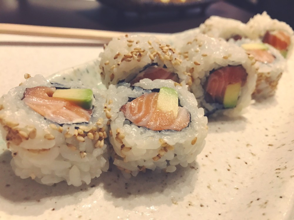Gli uramaki in Giappone non esistono ma decidiamo lo stesso di ordinare un roll con Tartare di Salmone, Avocado e Maionese che abbiamo apprezzato.