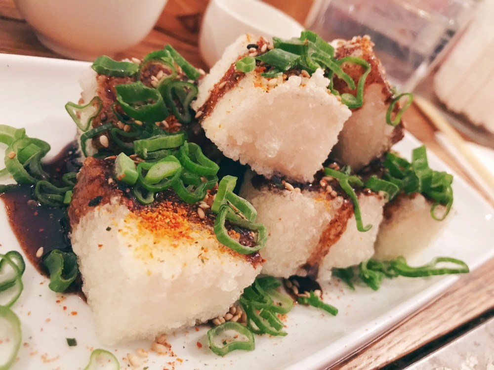 Arriva al tavolo bollente, croccante con la crosticina fuori e morbido dentro. Il sapore del Tofu come ben saprete è neutro ma assume gusto diverso a seconda della spezia e della vinaigrette che c’è sopra. Davvero ottimo!