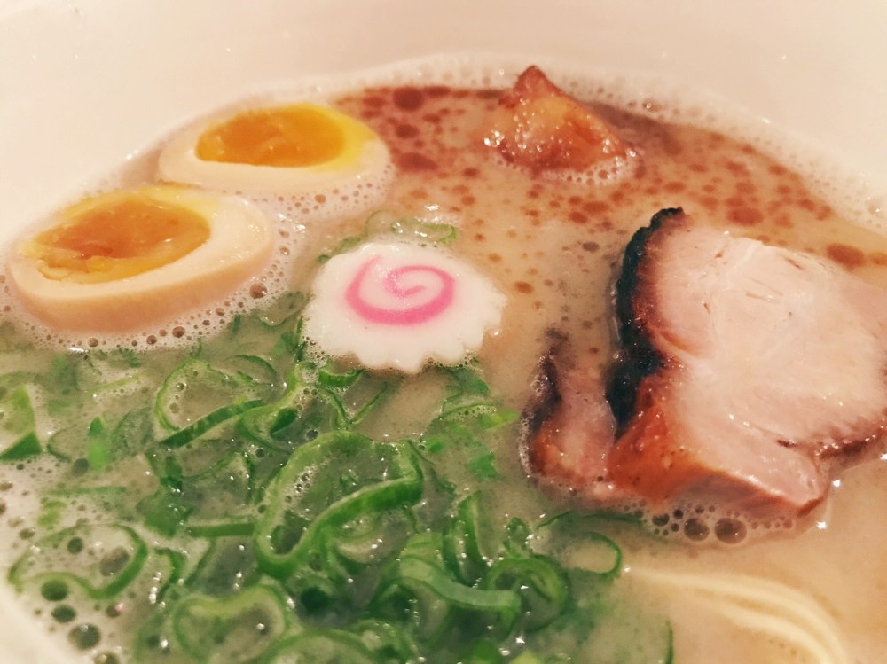 Il brodo è molto gustoso e grazie alla cottura lunga e al maiale, ha una consistenza quasi cremosa. La carne di maiale è grassa 🙂 e tenerissima. Consideriamo uno degli ingredienti piu importanti: la pasta! I noodles sono fatti in casa e la differenza è abissale. Apprezziamo molto anche l’uovo marinato, che abbiamo ordinato come ingrediente aggiuntivo. Come ciliegina sulla torta il classico Kamaboko, la rondella bianca e rosa ottenuta dalla lavorazione di surimi e pesce bianco. Il sapore è ottimo.