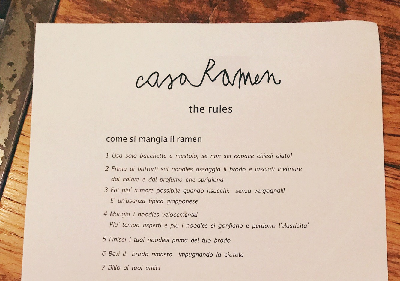 Proprio cosi, Casa Ramen non accetta prenotazioni e proprio come in giappone le persone si mettono in fila (vengono messe in lista dal personale) e aspettano il loro turno fino a che qualcuno arrivato prima di loro finisce di mangiare.