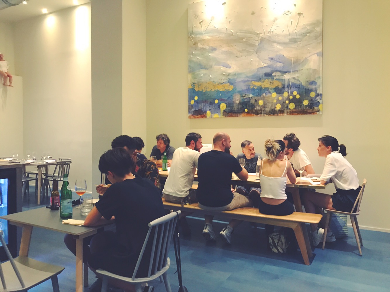 Il ristorante é molto illuminato e colorato, composto da una sala unica, sedute normali al tavolo, uno share table con le panche e qualche posto al bancone con cucina a vista.