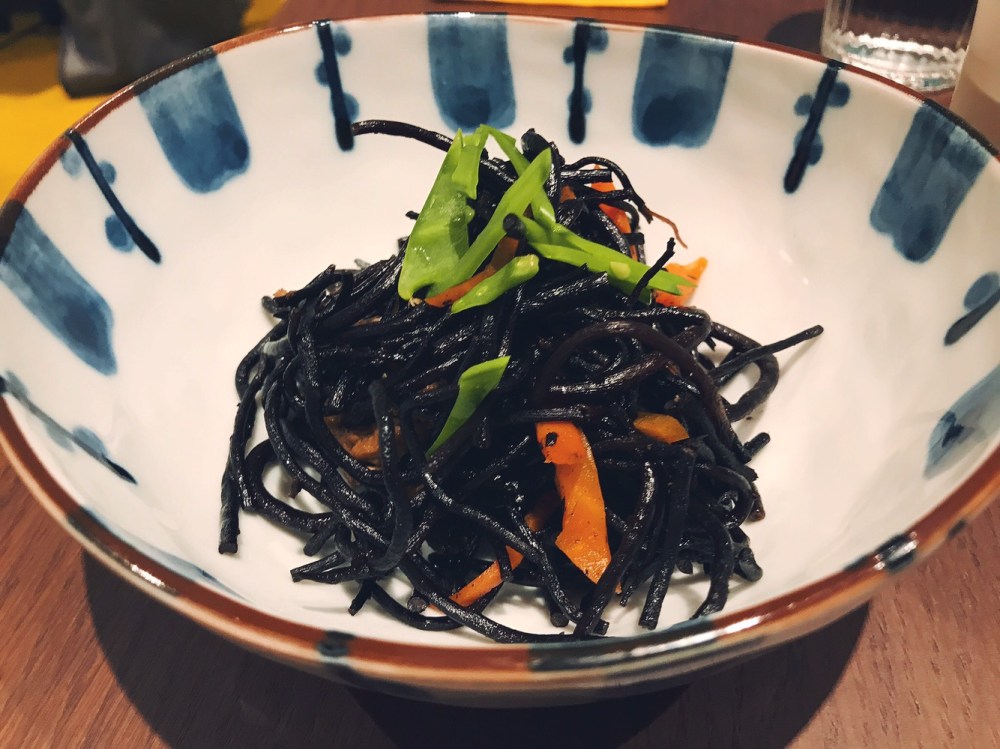 Il primo antipasto che assaggiamo é l’Hijiki Aburaage, croccanti alghe in insalata con Carote e Edamame.