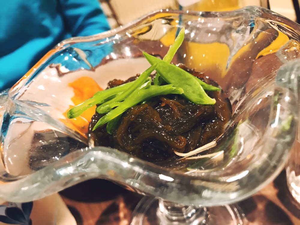 Poco dopo arrivano le Mozuku, prelibatezza della zona di Okinawa come sottolineato anche dal menu, un’alga giapponese sottaceto.