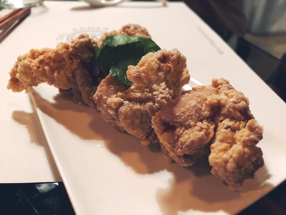Optiamo quindi, come prima portata, per il Tori Karaage, bocconcini di coscia di pollo marinati nella soia e fritti.