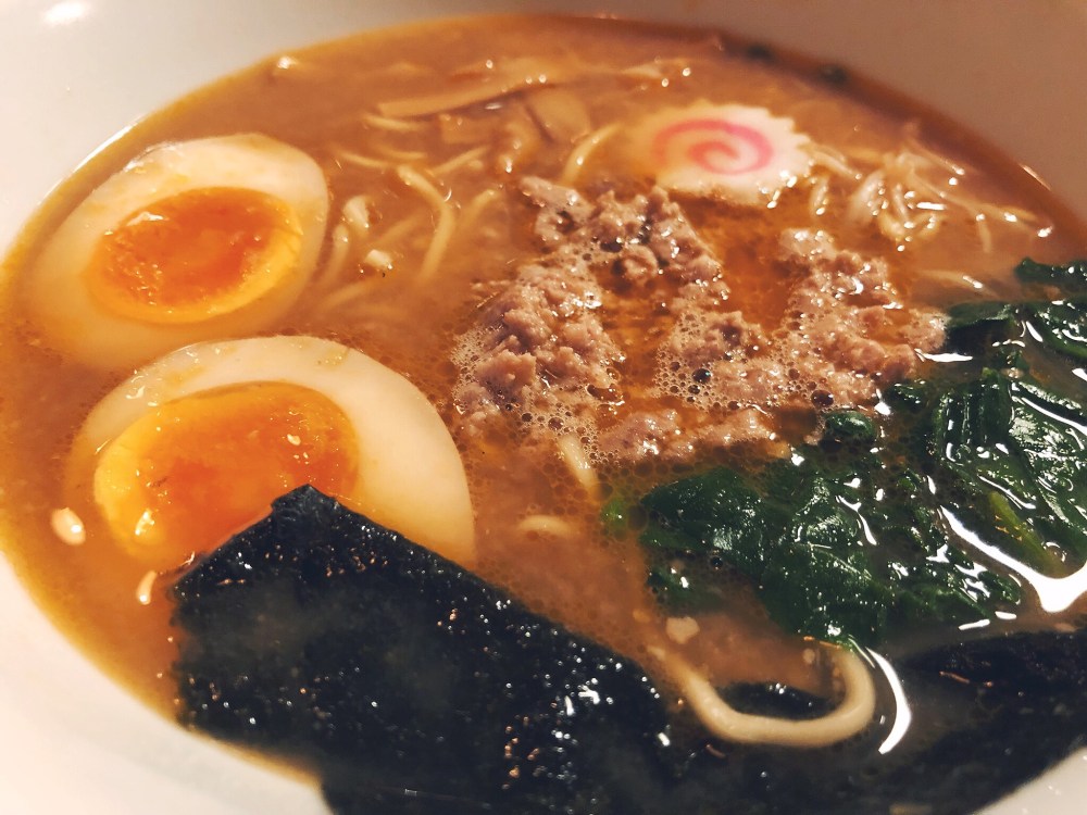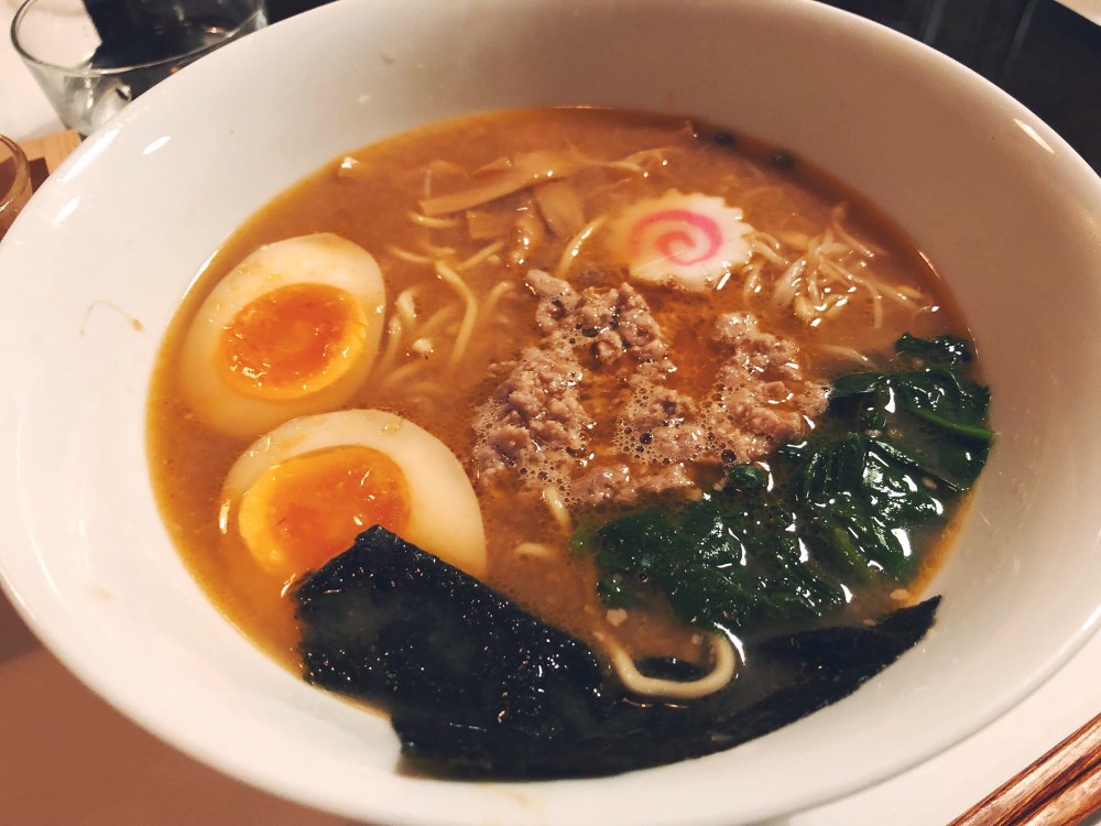 Il secondo invece è il Tantan Miso, ramen leggermente piccante con miso al sesamo, ragù di maiale, verdure, bambù, nitamago e naruto.