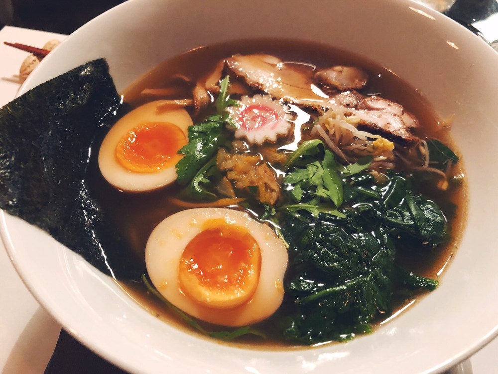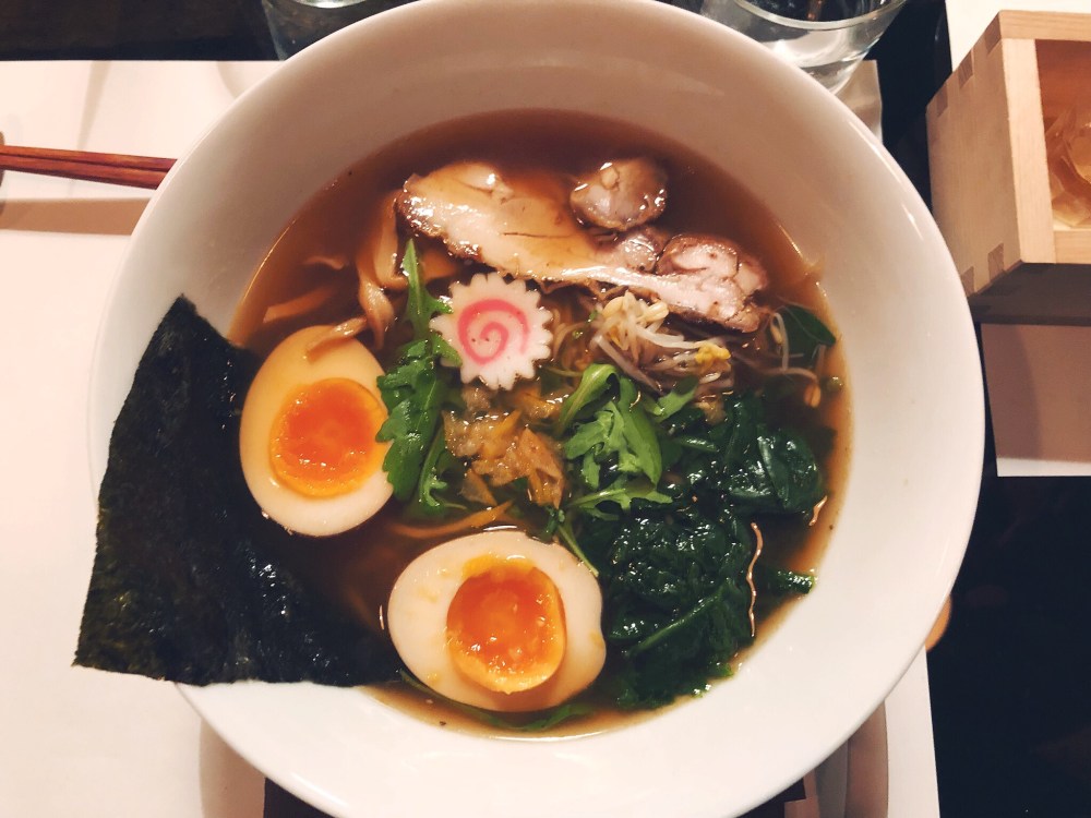 Si tratta di un ramen con brodo e salsa di soia al gusto di yuzu con fettine di pollo, verdure, bambù, nitamago e naruto.