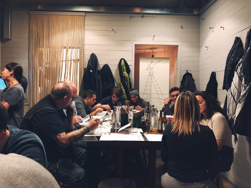 Veniamo fatti accomodare al piano terra e ci sediamo di fianco a ragazzi che stanno già gustando la loro ciotola di Ramen.
