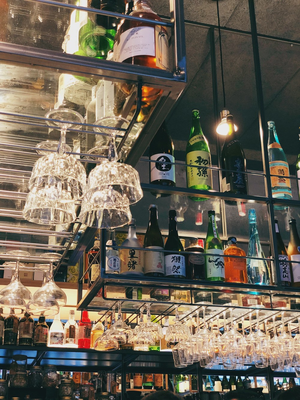 Appena preso posto rimaniamo incantati dal numero di bottiglie di sake esposte.