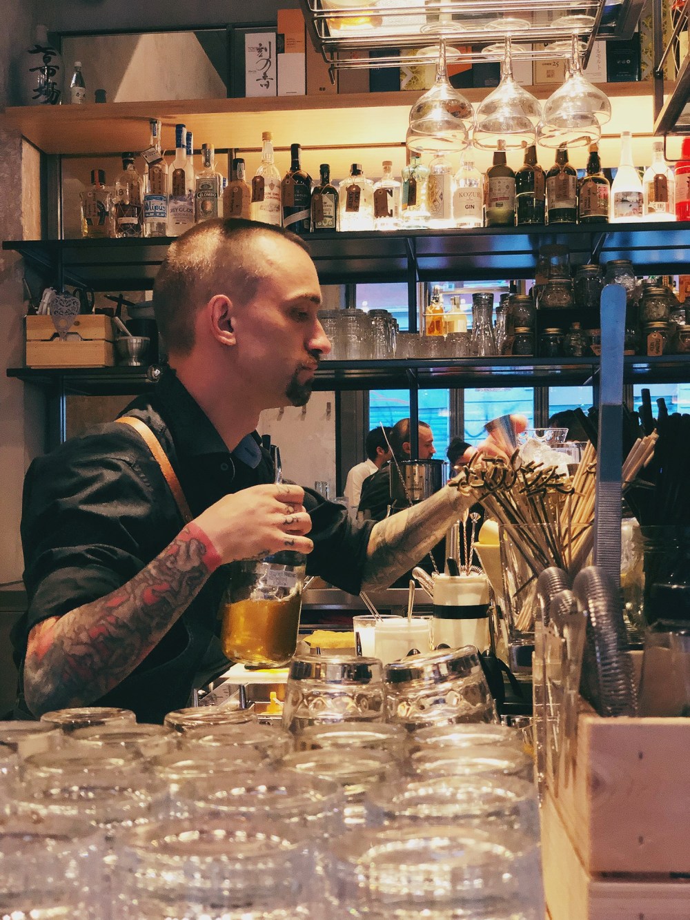 Davanti a noi c’è Samuele che miscelerà sotto i nostri occhi cocktail con ingredienti giapponesi.