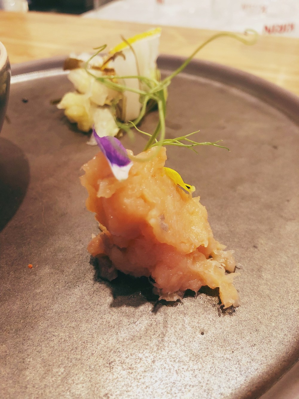 Mentre sorseggiamo l’aperitivo, Enrico e Jun ci propongono un percorso che possa farci capire l’essenza di Kanpai, quindi “Omakase”! ci fidiamo di voi!