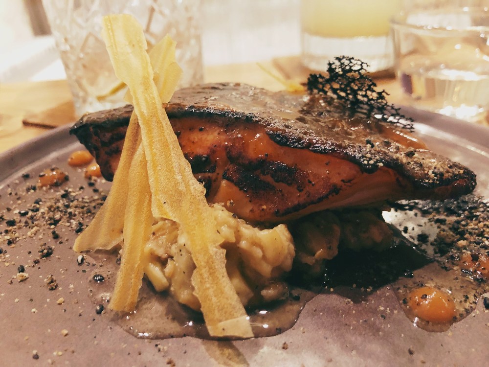 Il primo è Salmone selvatico cotto a bassa temperatura e marinato nell’arancia.
