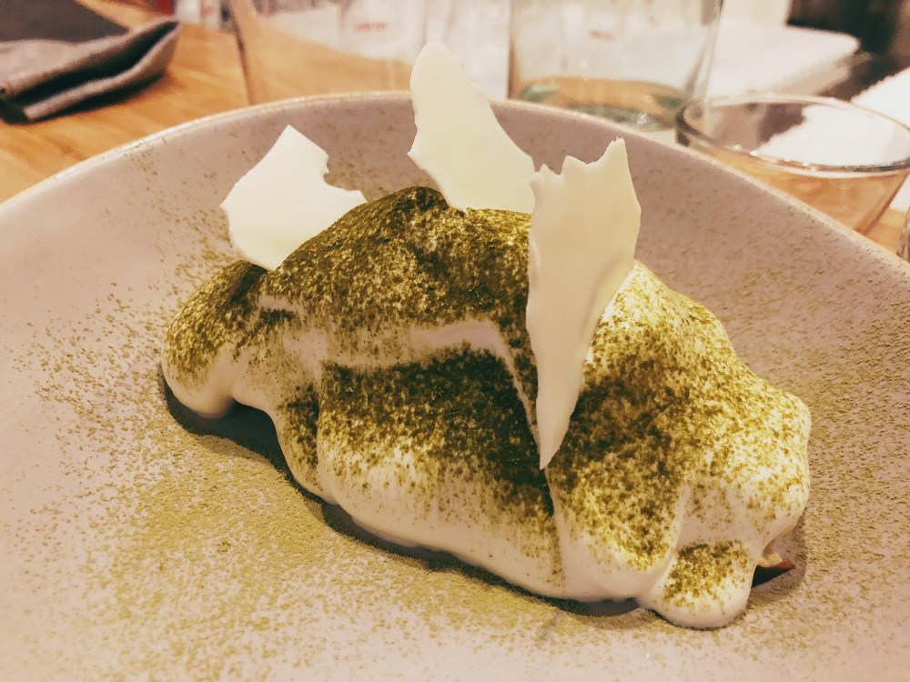 Non si può finire una cena senza dolce. Enrico e il suo team ci propongono un delizioso flan con panna montata al the matcha, arricchita da una marmellata di fagioli azuki.