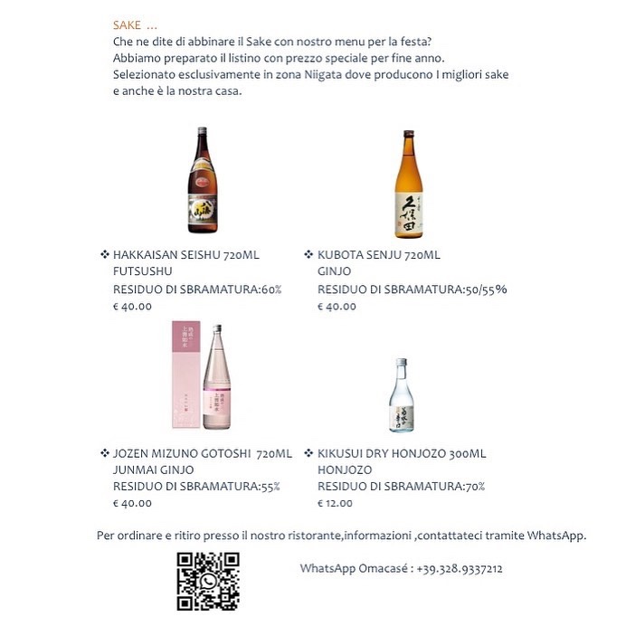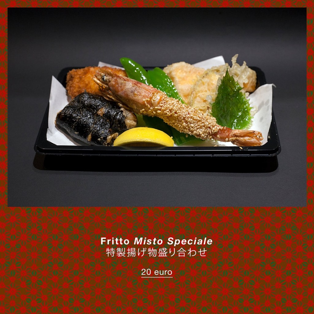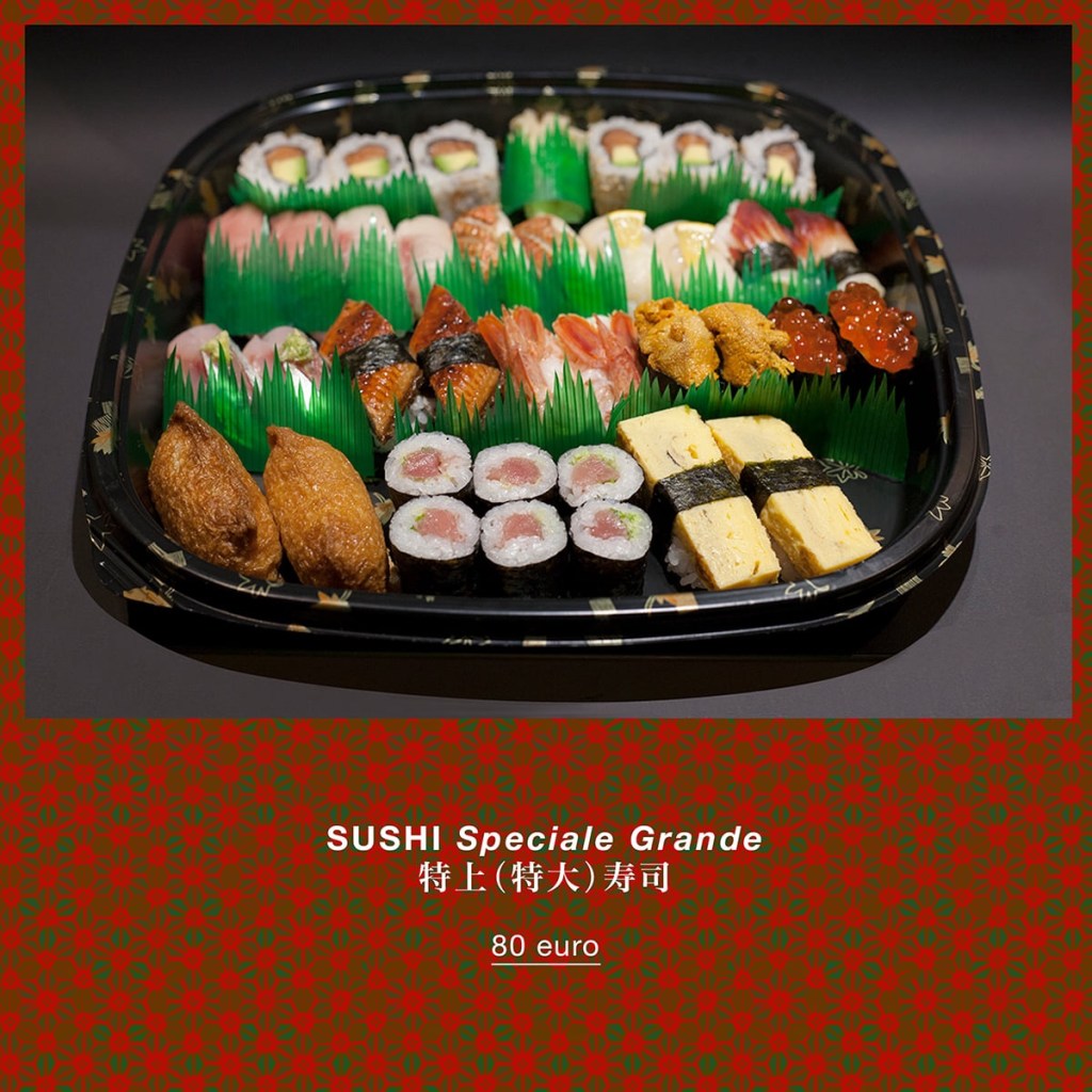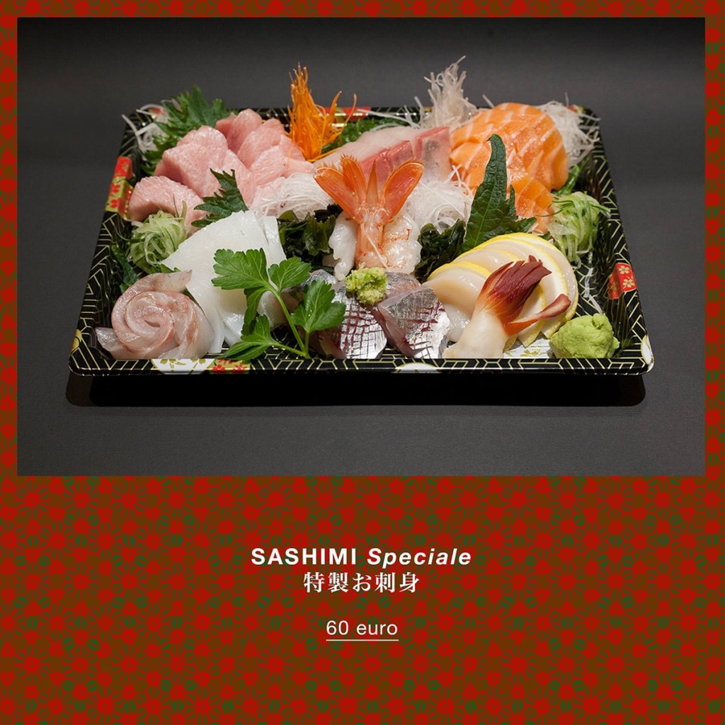 Sushi e sashimi misto + Special bento box. Sarà composto da antipastino, verdure in salamoia, yakimono (pietanza alla griglia) nimono (pietanza stufata), agemono (pietanza fritta). Il costo é di 60€ (é possibile aggiungere altre pietanze per renderlo più ricco).
