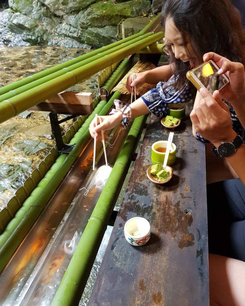 Il nome deriva dalla parola “nagasu” che significa “scorrere”. Si tratta di pasta di farina di frumento che viene fatta scorrere dentro degli scivoli di bambù. Ciò che si deve fare al ristorante che serve Nagashi somen é prendere le bacchette e afferrare la pasta che scorre davanti a te, inzupparla nella salsa e mangiarla. Ci sono ristoranti in Giappone specializzati in questo piatto!