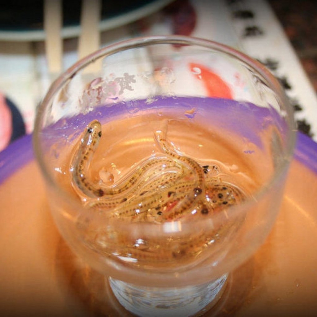 Sono dei pesci piccolini e trasparenti che si mangiano ancora vivi. Proprio cosi: una volta mangitati “danzeranno” in bocca. Solitamente sono conditi semplicemente con un po di soia. Questo piatto, molto conosciuto a Fukuoka nel Kyushu, sono noti come “ghiozzi di ghiaccio”. SI dice che l’usanza di mangiare questo piatti nacque più di 300 anni fa. Gli agricoltori, mentre bevevano sake sulle rive dei fiumi, raccoglievano dall’acqua manciate di pesciolini come questi e li lavavano nel sake. Dato che andavano a male molto presto decisero di aggirare questo problema mangiandoli ancora vivi. I Shiruo no Odorigui sono una vera prelibatezza del washoku.