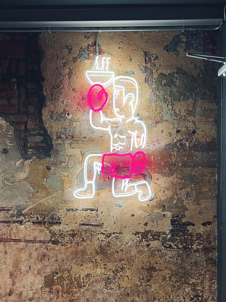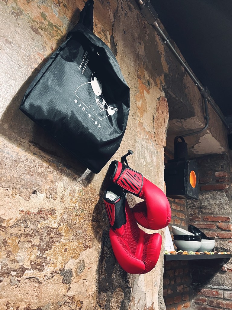 Il locale di Tenoha Ramen Club è pieno di riferimenti al mondo della box.